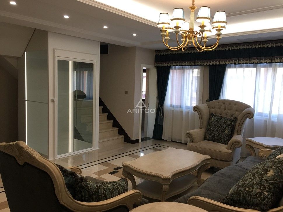 本案例位于江蘇揚州的別墅區(qū),業(yè)主每天上下五層樓,或搬運東西十分不便,后來經(jīng)過慎重考慮,在樓梯中間加裝了一部螺桿家用電梯,并選擇瑞特科的整機進口品牌,既安全,又美觀。