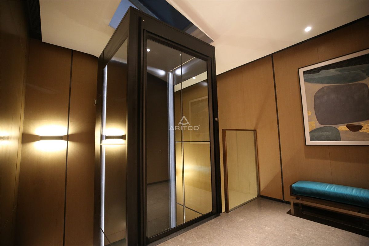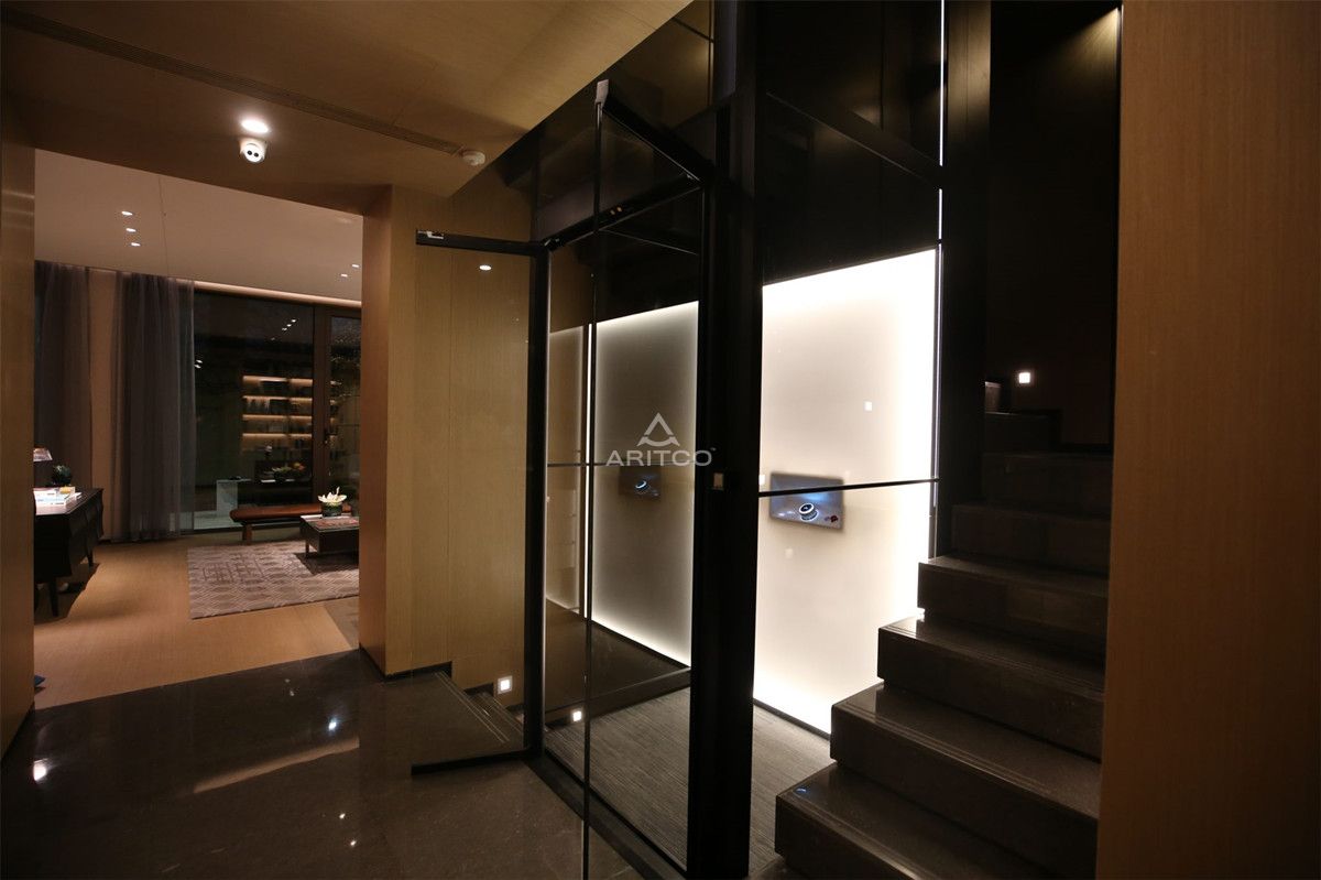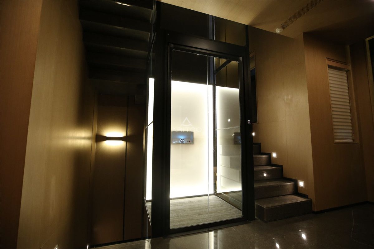 瑞特科電梯多種顏色可選,黑色沉穩(wěn)大氣,凸顯用戶品味和地位,背景墻和燈帶散發(fā)著如成功人士般的魅力